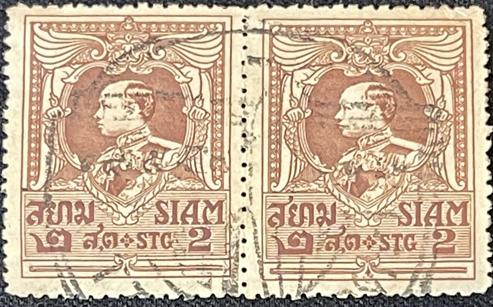 Siam has a history of philitelic oddeties and uniqness. This was due in part to it's isolation from the major postage printing houses in England, France and Belgium. The development, approval and delivery lifecycle was far too long to adequitly supply the postage denominations required by Siam.