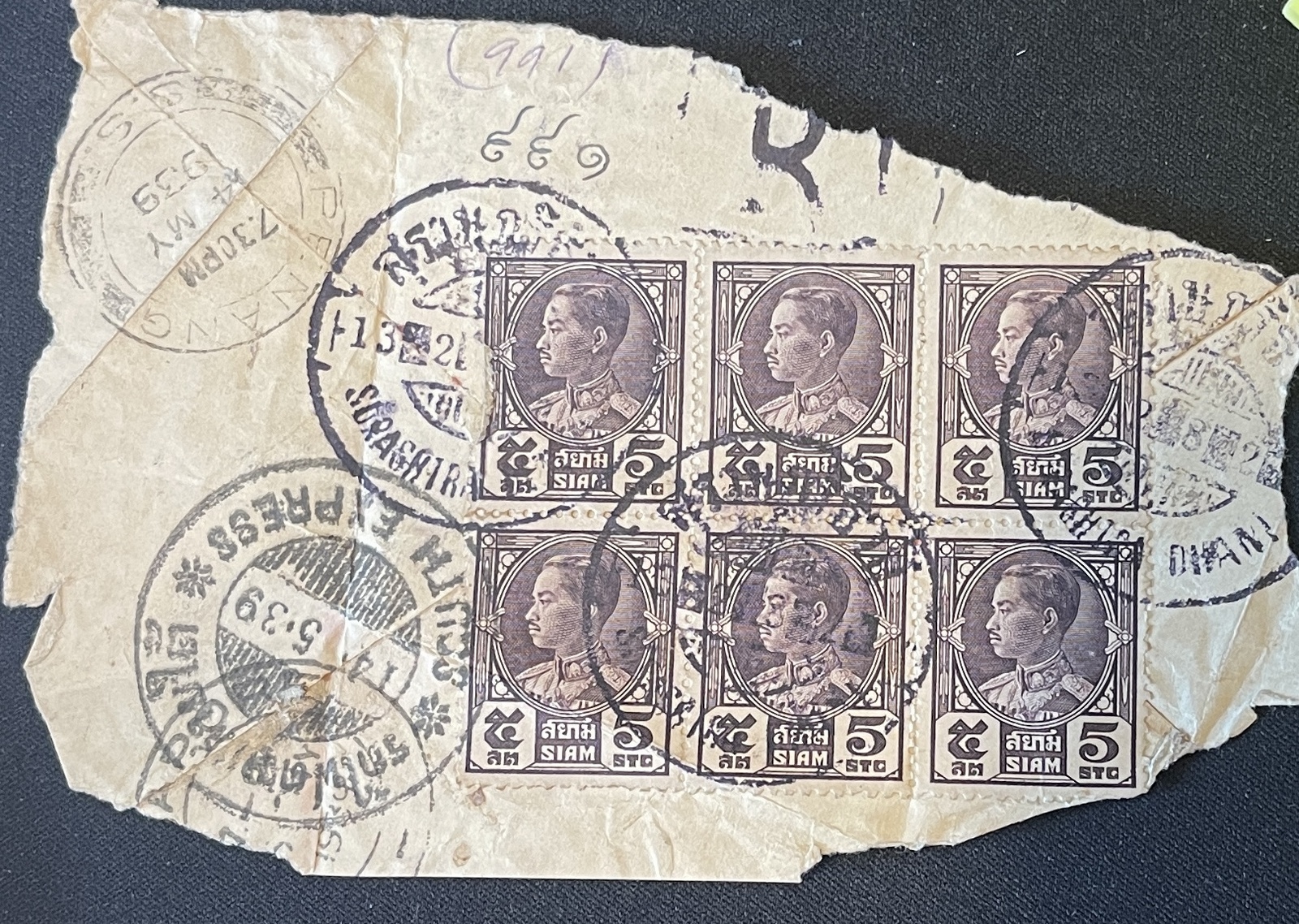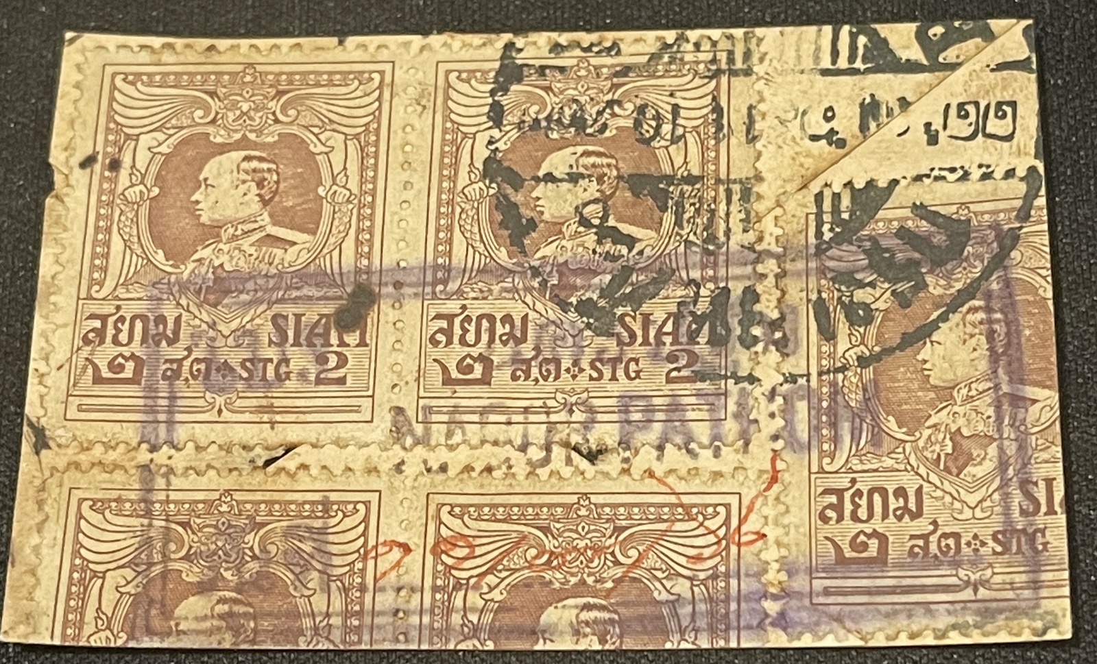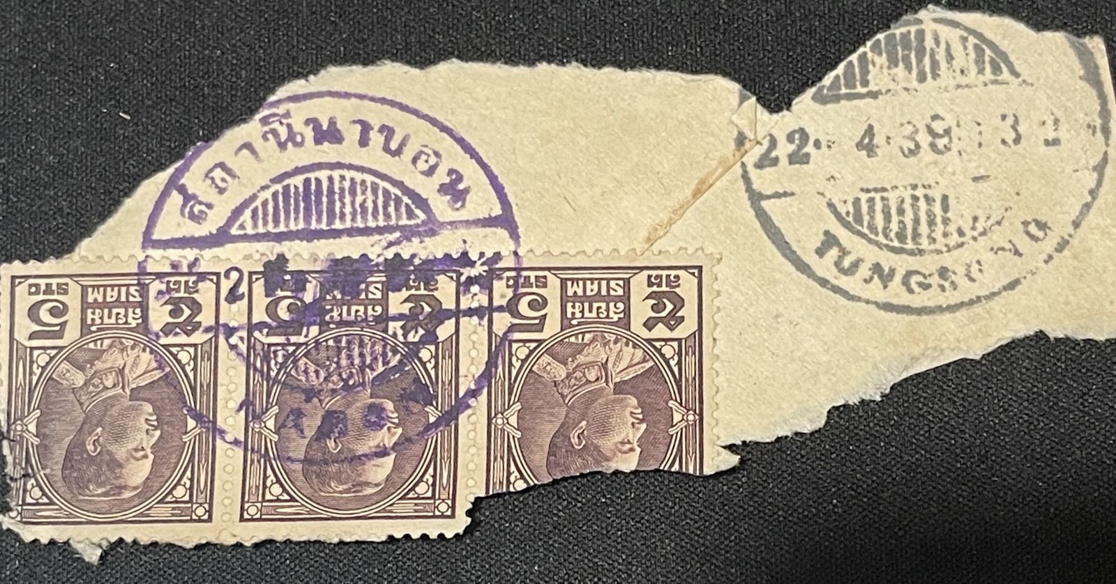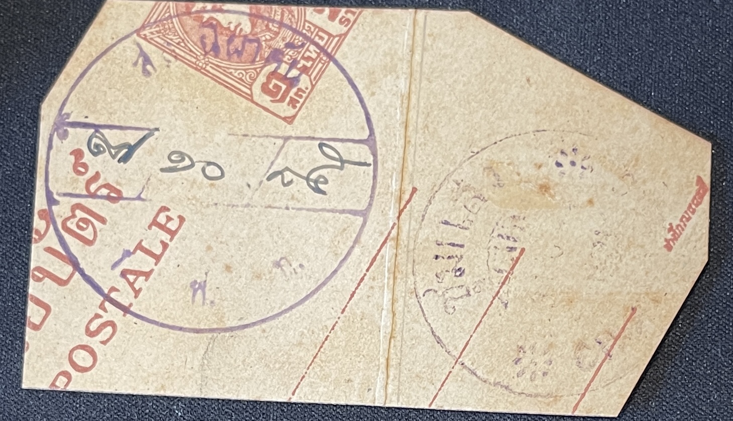 Type 1 Large wooden rectangular handstampStraight line town name in Thai